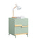 Detta eleganta vita nattduksbord med trästruktur är perfekt för små rum och har en bredd på endast 20 cm.