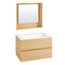 Det smala badrumsskåpet har en unik 3D-front i trälook med mjukt böljande mönster som ger karaktär åt ditt badrum. Den dolda handtagsdesignen förstärker den stilrena känslan.