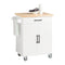 Denna köksvagn har en stor låda och ett skåp med dörrar för dammfri förvaring av redskap, porslin eller små köksmaskiner.